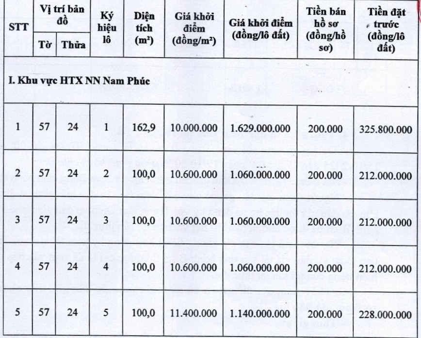 The auction is conducted by the method of bidding up, by direct voting in one round for each plot of land at the auction, bidding according to the unit price calculated on 1m2 (not small to hundreds of VND). Eligible plots of land will be auctioned simultaneously in the same session.