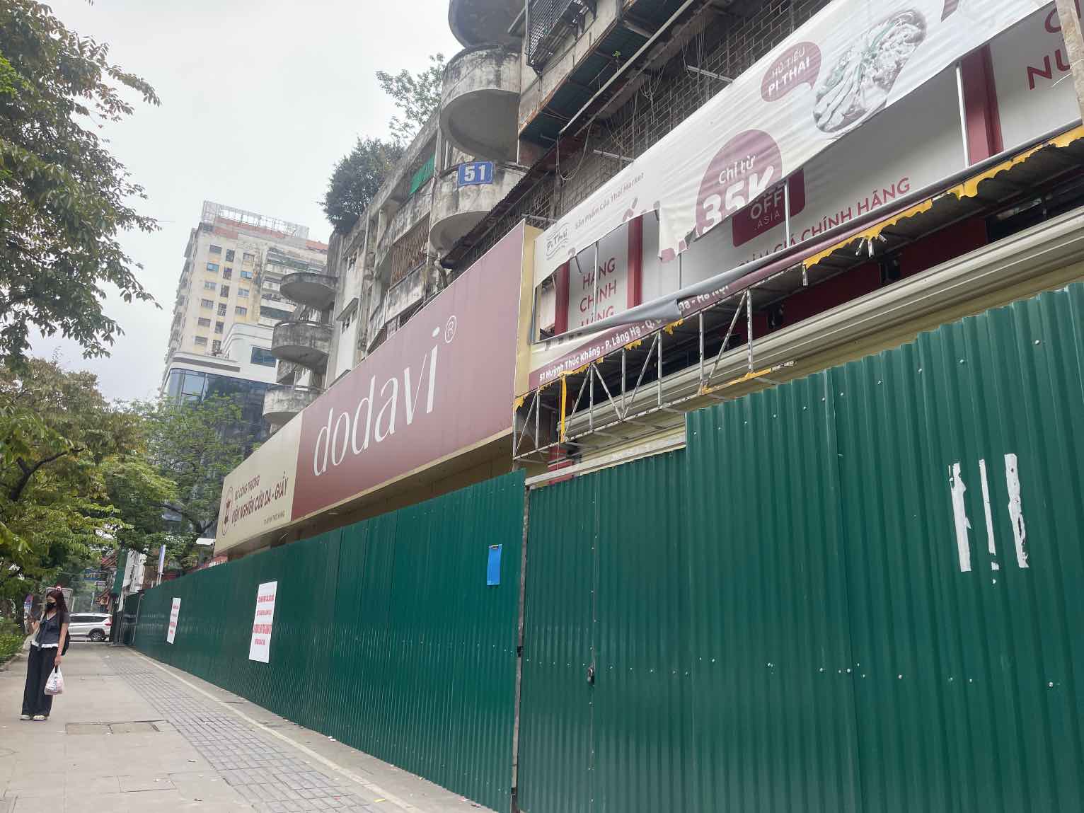 According to Lao Dong's records on April 5, the 1st floor area of apartment building 51 Huynh Thuc Khang has now been cordoned off, preparing for the demolition and construction of a new building.