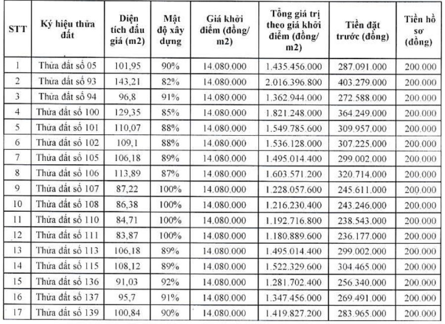 In case the auction participant registers many land plots on the Auction Registration Form but only deposits money in advance for a certain number of land plots, the participant must clearly state the symbols of the corresponding land plots in the money transfer content. All deposits that are not sufficient according to regulations are determined to be invalid and not eligible to participate in the auction.