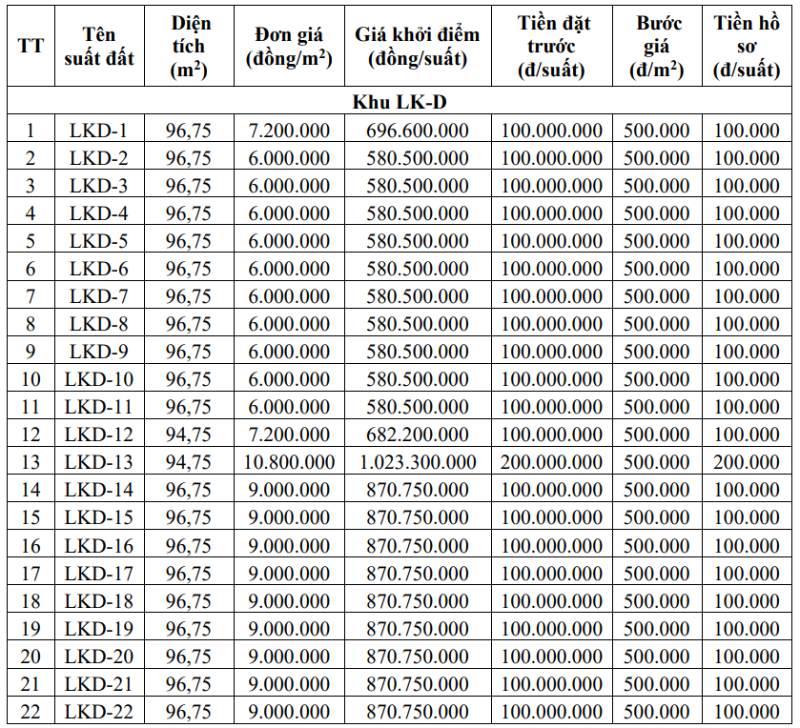 The total starting price of the property is 53,914,500,000 VND, excluding taxes, fees, charges and other financial obligations related to the transfer of rights and assignment of land use rights; these costs are borne by the auction winner according to regulations.