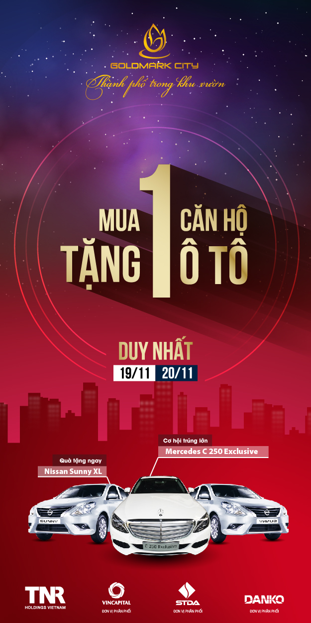 Khách hàng mua căn hộ Goldmark City trong 2 ngày 19&20/11 được tặng ngay 01 xe Nissan Sunny XL trị giá 498 triệu đồng.