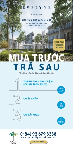 ParkCity Hanoi dành ưu đãi đặc biệt cho đợt mở bán cuối cùng của tiểu khu Evelyne Gardens. Việc sở hữu một ngôi nhà trong công viên tại ParkCity Hanoi đã trở nên dễ dàng hơn với chính sách thanh toán hấp dẫn MUA TRƯỚC, TRẢ SAU. Khách hàng chỉ cần thanh toán 25% trước khi nhận nhà cùng nhiều ưu đãi lên đến hàng trăm triệu đồng khi mua nhà tại tiểu khu Evelyne Gardens. Chương trình ưu đãi đặc biệt này chỉ dành cho 24 khách hàng và kết thúc vào ngày 30/11/2016.