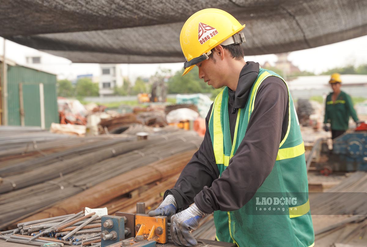 Mr. Vu Van Thuan (from Nghe An) shared: "These days, our brothers work in shifts to keep up with the progress, mainly processing and bending the foundation part, so it is quite hard, especially in hot weather conditions. We have to take advantage of working early and taking breaks to avoid harsh sunlight, but still try to stick to the construction site, ensuring progress and quality of the project.