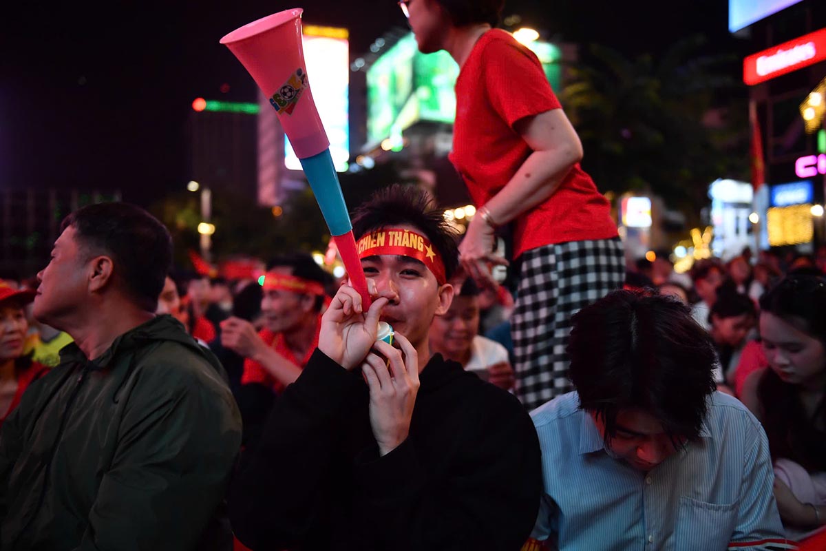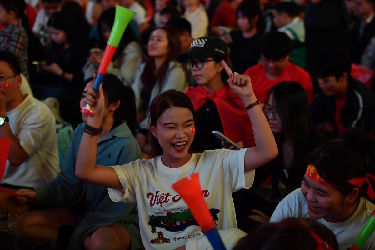 According to Lao Dong's records at Nguyen Hue pedestrian street, crowds of fans flocked here to watch the match through large LED screens installed to serve fans.