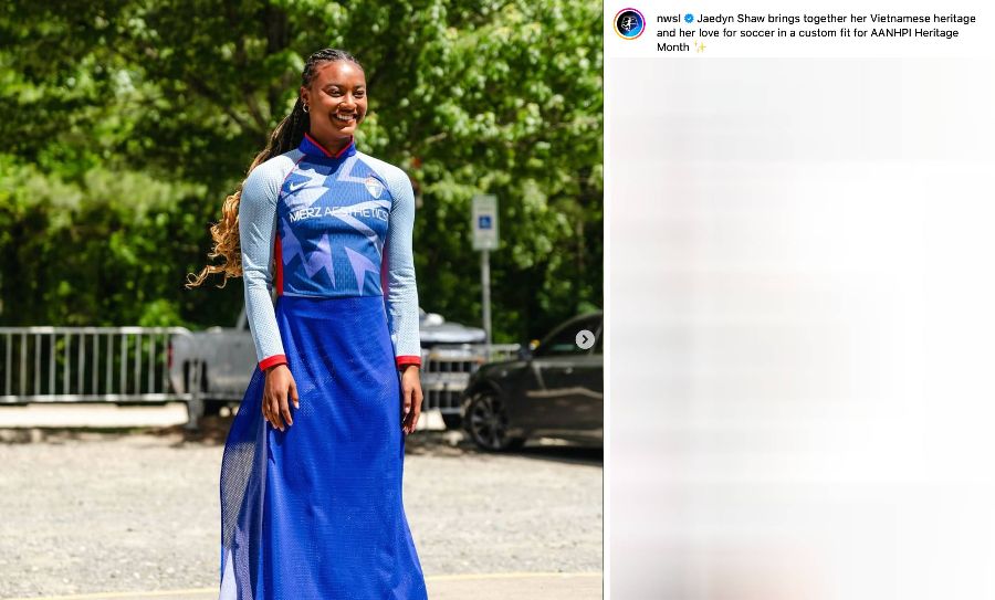 Vietnamese-American player Jaedyn Shaw honored the Vietnamese ao dai in a creative way when combined with a football jersey.
