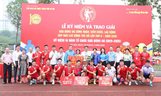 Hanoi - On April 22, the 10th Capital Labor Newspaper Cup football tournament for workers, civil servants, and laborers (CNVCLD) in 2025 closed at Hoang Mai Stadium.