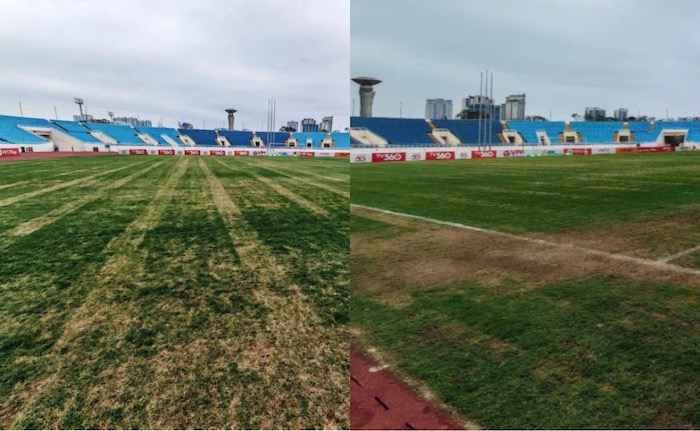 My Dinh Stadium's grass is degraded before the quarter-final match of the National Cup