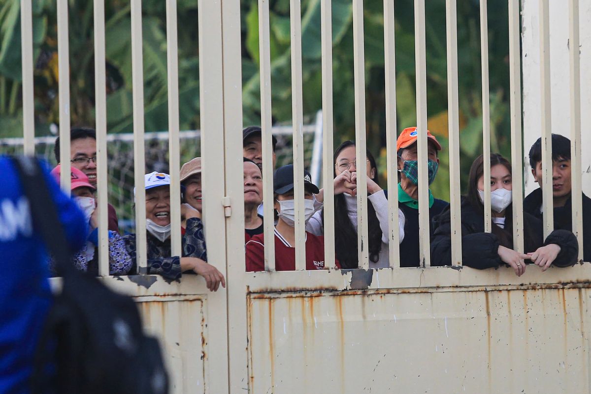 Many fans were present outside Viet Tri Stadium (Phu Tho), clinging to the gate fence to watch the training session of the Vietnamese team preparing for the match against Singapore in the second leg of the ASEAN Cup 2024 semi-finals.