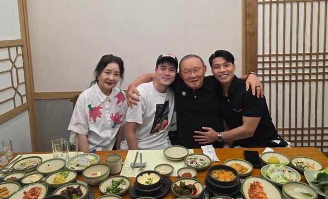 Players Van Toan and Van Thanh had a meeting and had a meal with coach Park Hang-seo and his wife.