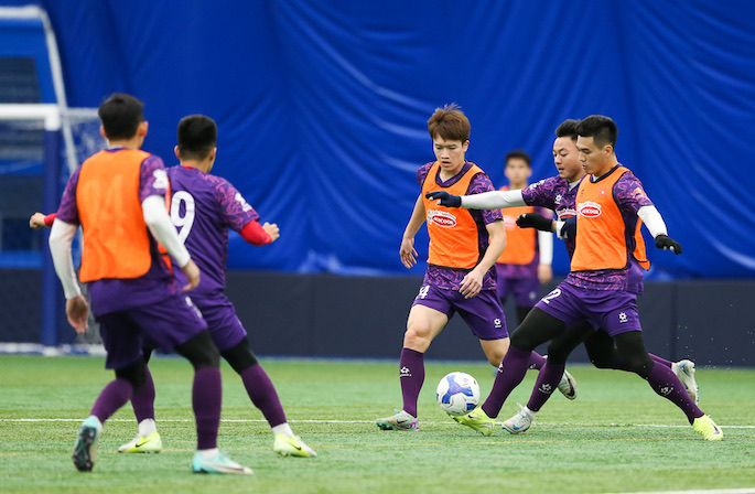 During the training trip in Korea, the Vietnamese team had exercises to supplement strength and muscle, trying to meet the strict requirements of coach Kim Sang-sik.