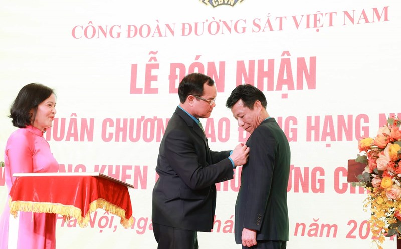 Chairman of Vietnam Railway Trade Union Mai Thanh Phuong was honored to receive the Second Class Labor Medal.