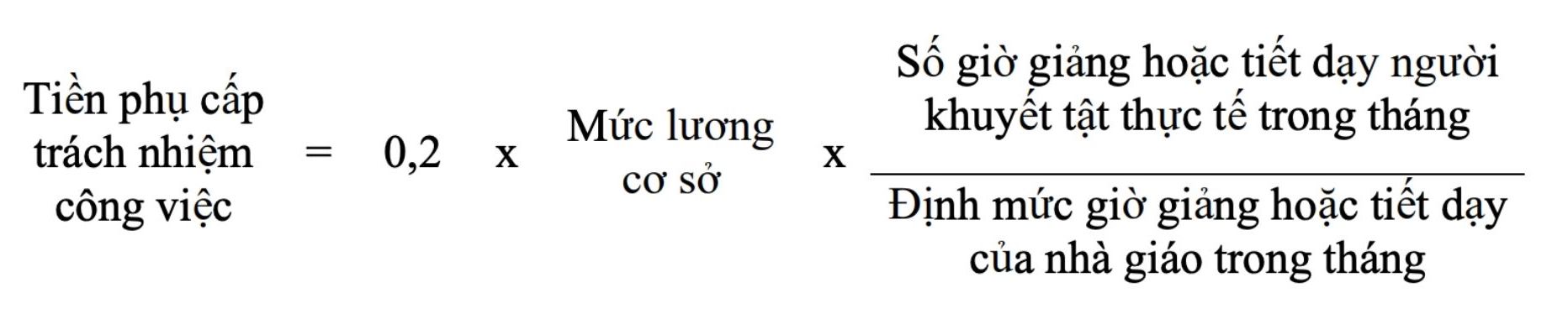 b) Teachers directly teaching people with disabilities through integrated education in educational institutions that are not specialized schools or centers supporting the development of integrated education are entitled to work responsibility allowances as follows: