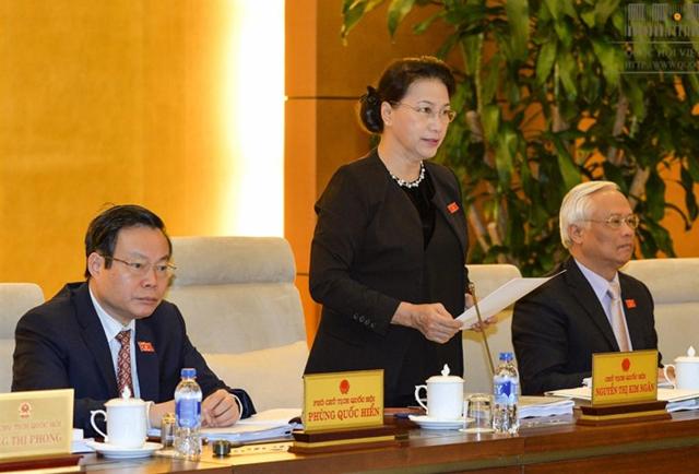 Phát biểu tại phiên họp, Chủ tịch Quốc hội Nguyễn Thị Kim Ngân cũng đề cập đầu tư cho ngành tư pháp. Hiện nay, nước ta vẫn còn 35 tòa án phải đi thuê nhà để xét xử là không thể chấp nhận được. Chúng ta phải dành cho chương trình cải cách tư pháp, nếu là công trình mới thì phải ưu tiên cho lĩnh vực tư pháp để hài hòa với các lĩnh vực khác. Còn các công trình trọng điểm quốc gia đề nghị Chính phủ chuẩn bị để báo cáo kỳ họp thứ 3 Quốc hội khóa XIV.
