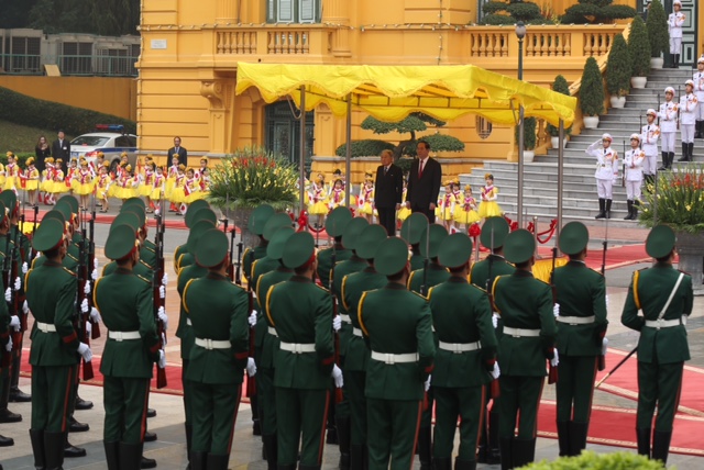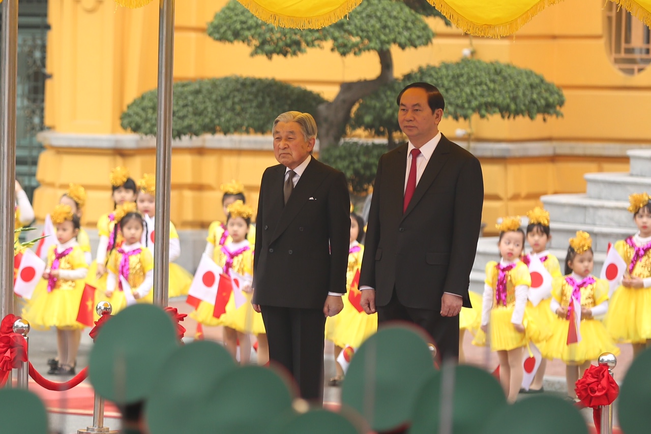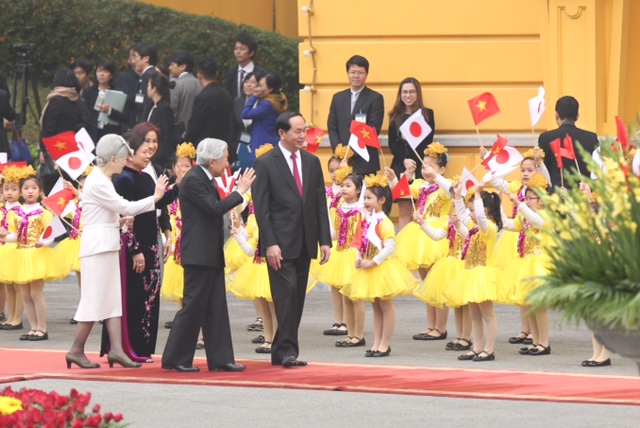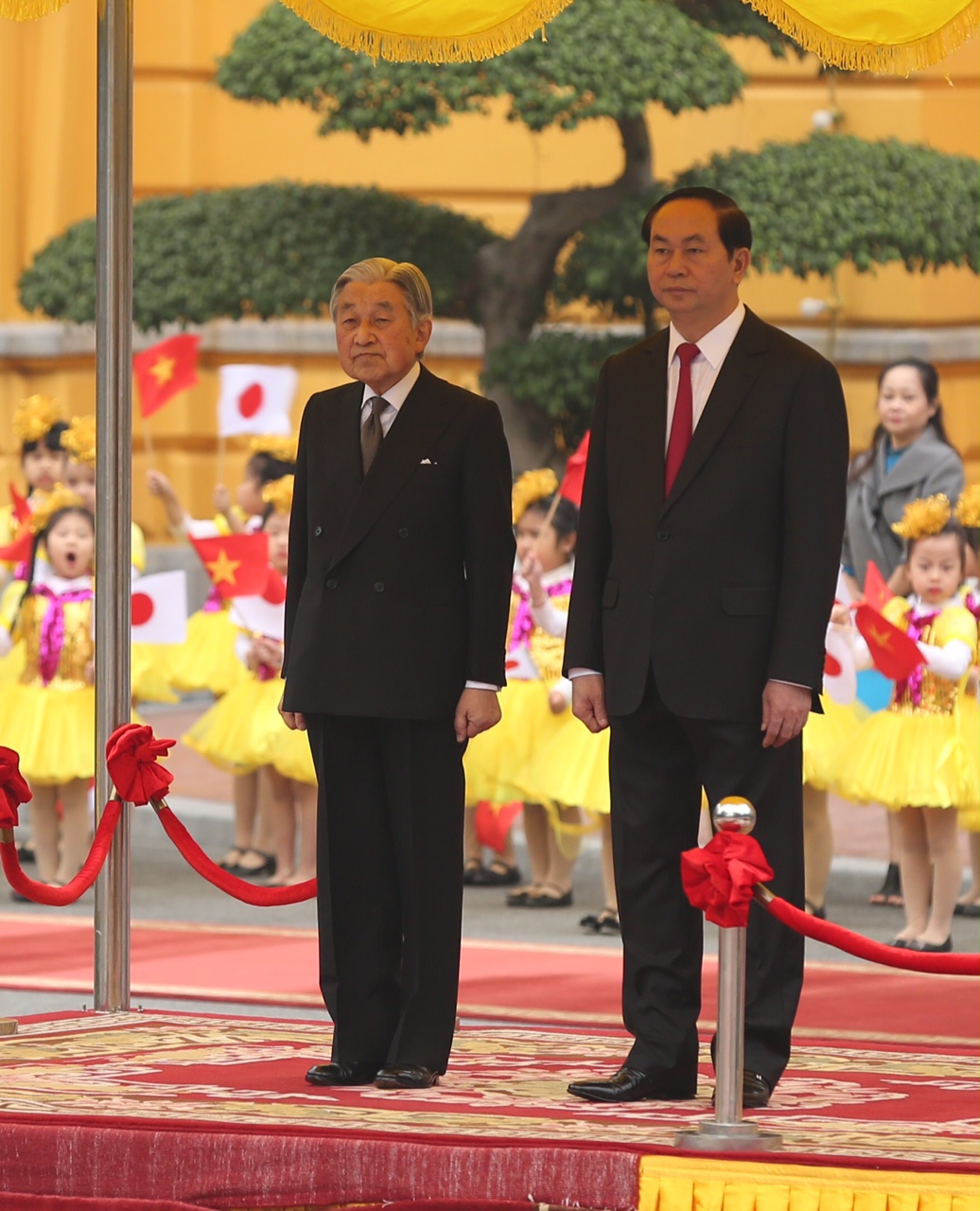 | Chủ tịch Nước Trần Đại Quang chủ trì lễ đón Nhà vua và Hoàng hậu Nhật Bản. |