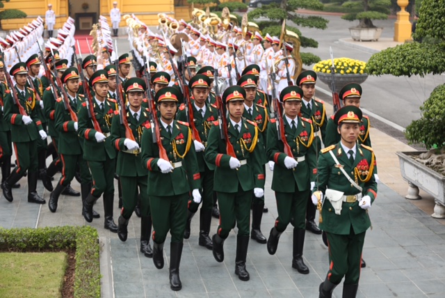 | Đội danh dự trong lễ đón Nhà vua Akihito và Hoàng hậu Michiko. |