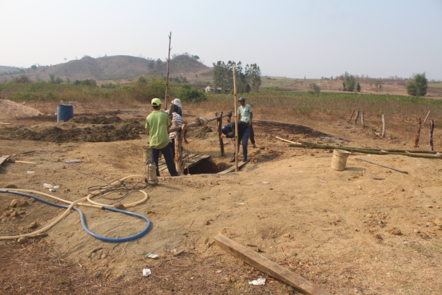| Người dân khổ sở đào giếng để kiếm nước sinh hoạt. Ảnh: Đình Văn |
