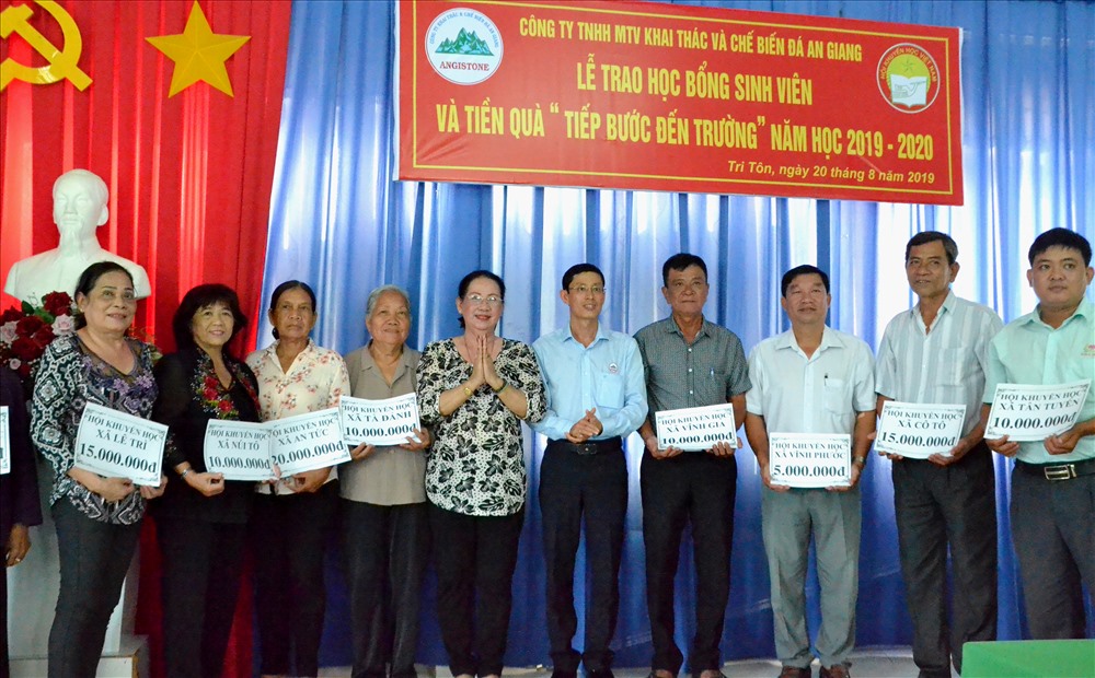 Ngày 20.8, nhân kỷ niệm 131 năm Ngày sinh Chủ tịch Tôn Đức Thắng, Hội khuyến học phối hợp Liên đoàn lao động huyện Tri Tôn tổ chức trao hỗ trợ 350 triệu đồng khuyến học, khuyến tài do Công ty Trách nhiệm hữu hạn Một thành viên Khai thác – Chế biến đá An Giang (Angistone) tài trợ.