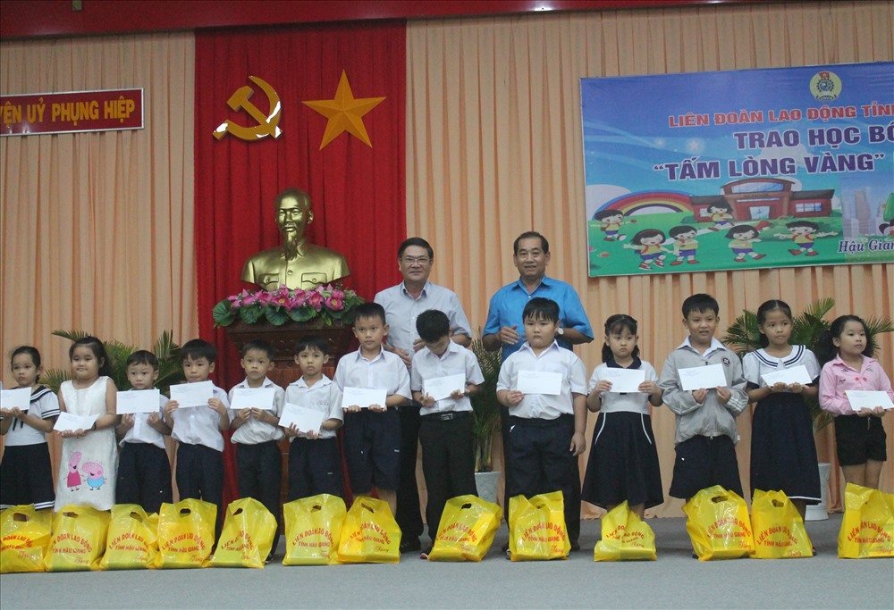 Chiều ngày 9.8 tại hội trường Huyện ủy Phụng Hiệp, tỉnh Hậu Giang. LĐLĐ tỉnh Hậu Giang tổ chức trao học bổng từ Quỹ Tấm lòng vàng và trao 239 phần quà cho các em học sinh.