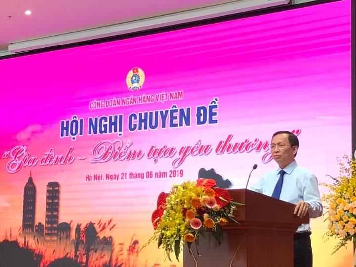 Hội nghị chuyên đề "Gia đình - Điểm tựa yêu thương" được Công đoàn Ngân hàng Việt Nam (CĐNHVN) tổ chức sáng ngày 21.6. Dự hội nghị có các đồng chí: Đào Minh Tú - Phó Thống đốc NHNN, Chủ tịch CĐNHVN; Nguyễn Thị Thái - Trưởng Ban Nữ công CĐNHVN; cùng các đại diện lãnh đạo CĐNHVN, CCVCLĐ trong ngành...