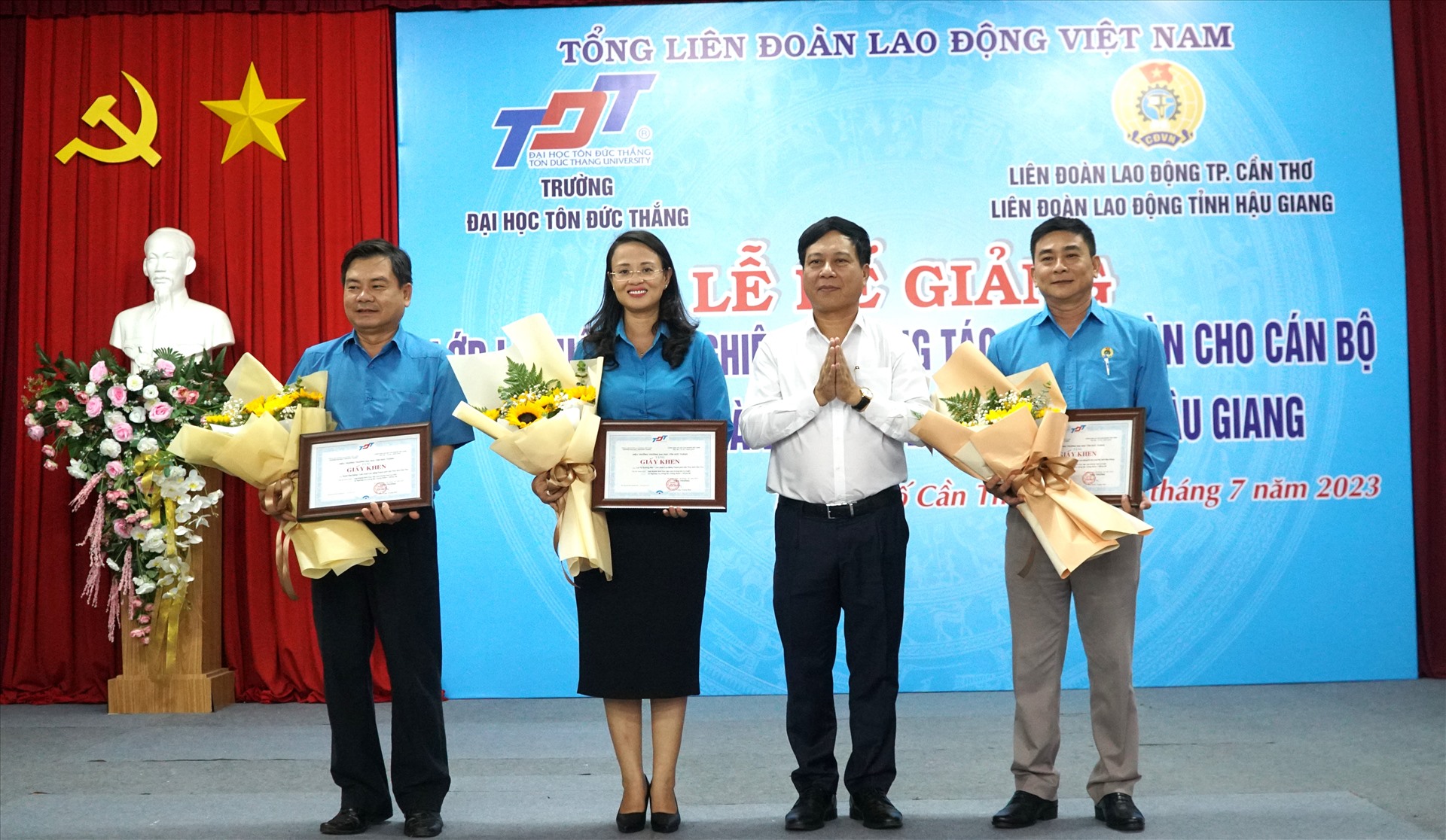 Ngày 1.7, Liên đoàn Lao động (LĐLĐ) TP Cần Thơ, LĐLĐ tỉnh Hậu Giang phối hợp cùng Khoa Lao động – Công đoàn Trường Đại học Tôn Đức Thắng tổ chức Lễ Bế giảng lớp Lý luận và Nghiệp vụ công tác Công đoàn Khóa 40 tại Cần Thơ năm 2022 – 2023.