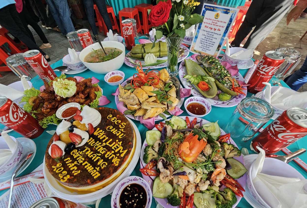 Nhiều món ăn trong chương trình “Khi nam vào bếp” tại Ngày hội Công nhân TP Long Xuyên, An Giang, làm mãn nhãn người xem.