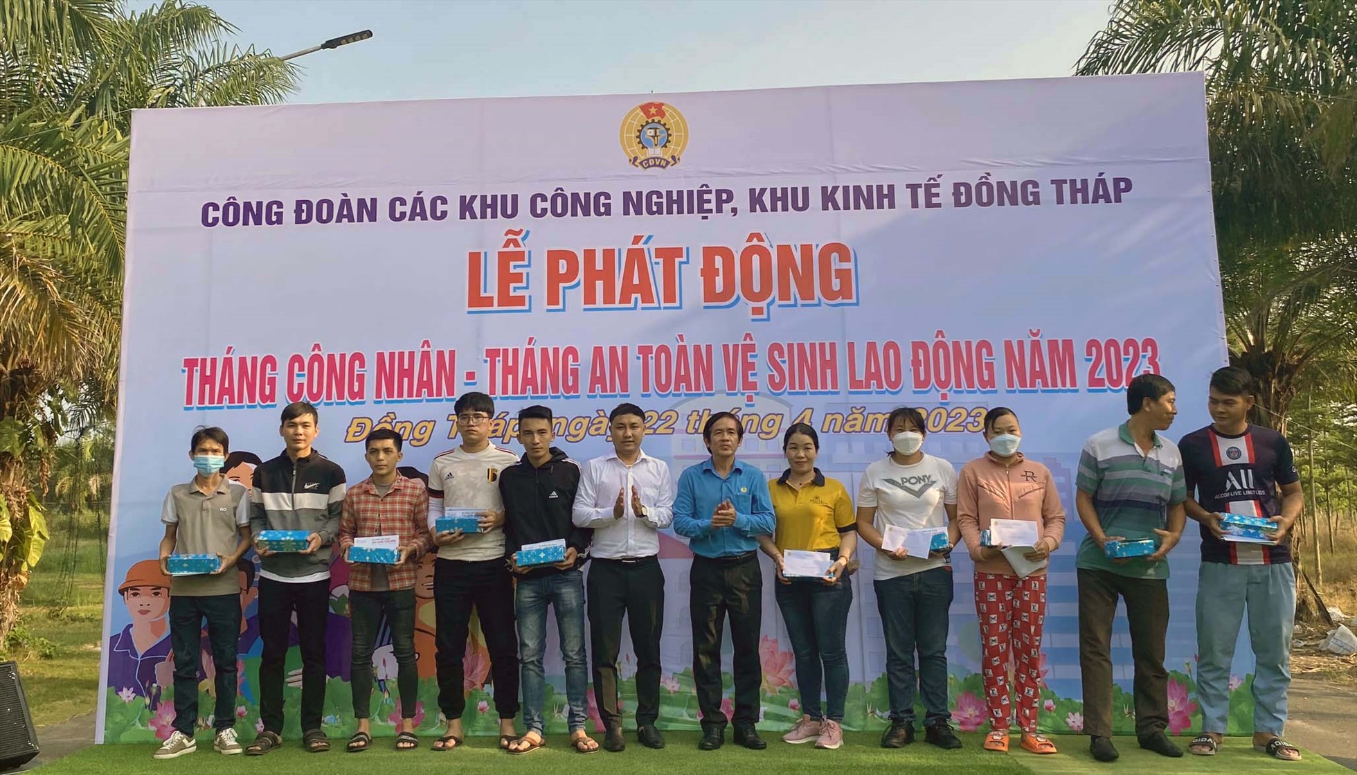 Tại lễ phát động “Tháng Công nhân” năm 2023, Công đoàn các khu Công nghiệp, khu kinh tế Đồng Tháp đã hỗ trợ hàng trăm phần quà cho đoàn viên, người lao động.