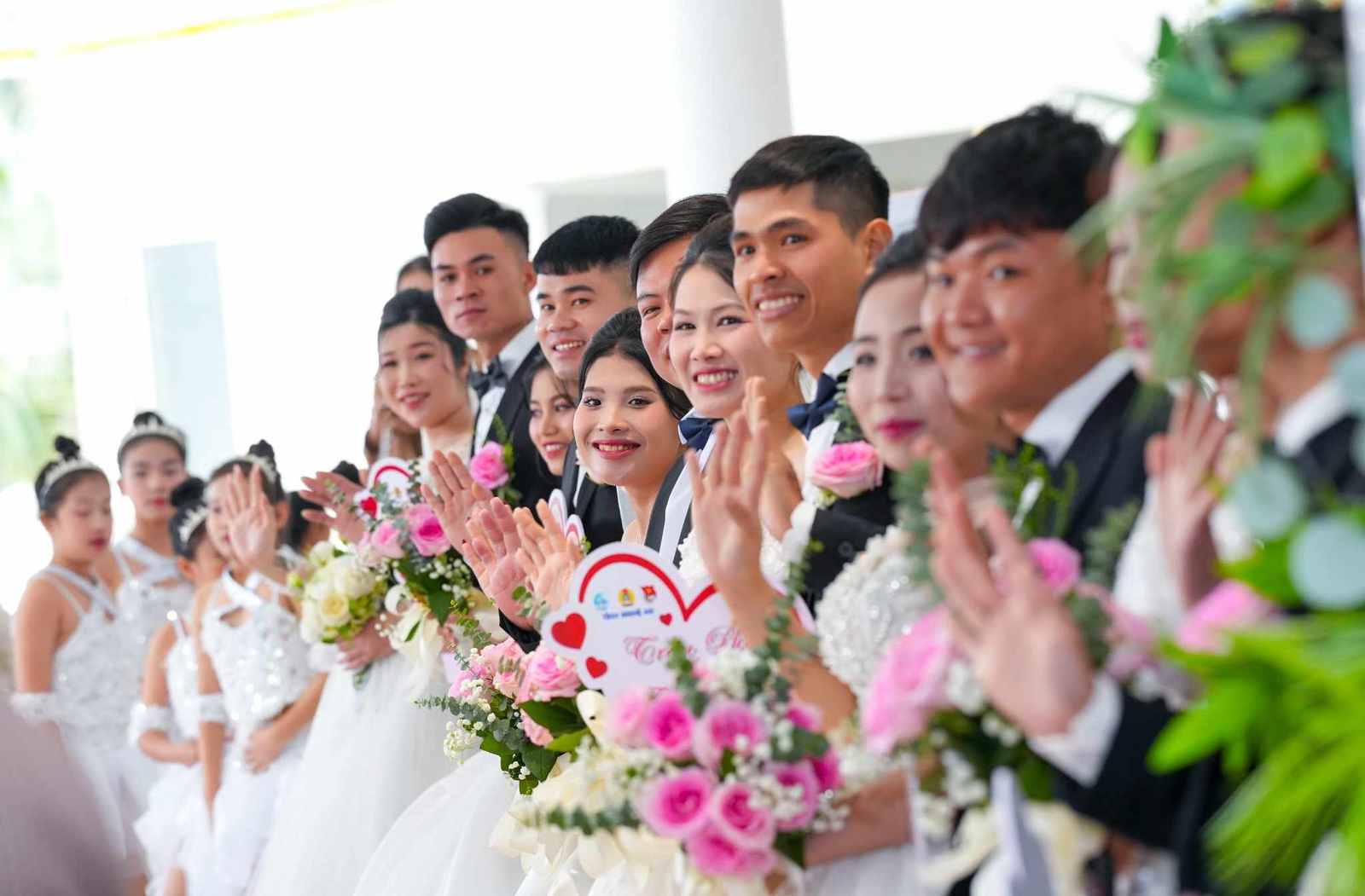 Nghe An - The Provincial Labor Federation organized a solemn and warm collective wedding for 11 pairs of workers in difficult circumstances.