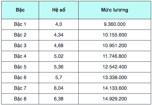 - Grade I - Code V.07. 02. 24, the salary coefficient of civil servants type A2, group A2. 2 is applied from salary coefficient 4.00 to salary coefficient 6.38.