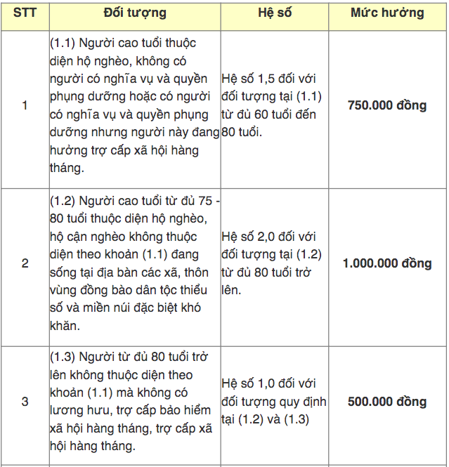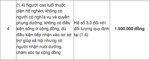 Người từ đủ 80 tuổi trở lên không thuộc diện quy định tại Điểm a khoản này mà không có lương hưu, trợ cấp bảo hiểm xã hội hàng tháng, trợ cấp xã hội hàng tháng;