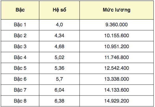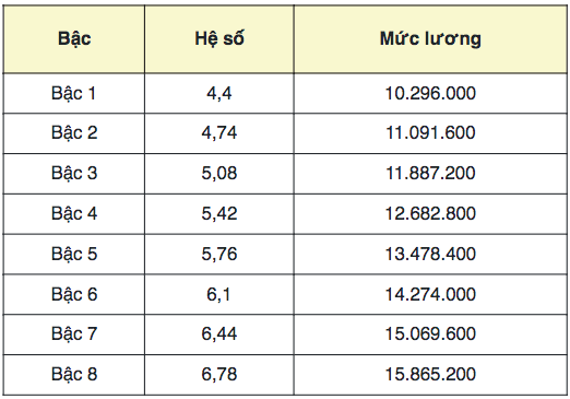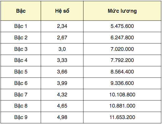 - Grade III - Code V.07. 03. 29, the salary coefficient of civil servants type A1 is applied from salary coefficient 2.34 to salary coefficient 4.98;