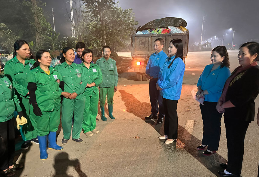 At the same time, the Chairman of the Provincial Labor Federation also acknowledged and praised the spirit of responsibility and silent efforts of the team of workers - those who do not mind the weather and time, working overnight to maintain a green - clean - beautiful environment, contributing to people celebrating Tet in a fresh and civilized atmosphere.