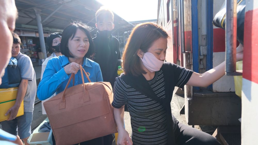 At the farewell ceremony for union members, leaders of the City Labor Federation wished union members and their families a warm Tet holiday with their loved ones in their hometown. Leaders of the City Labor Federation also reminded union members to return to work after the end of the Tet holiday in accordance with regulations so as not to be affected by the production and business situation of businesses and units.
