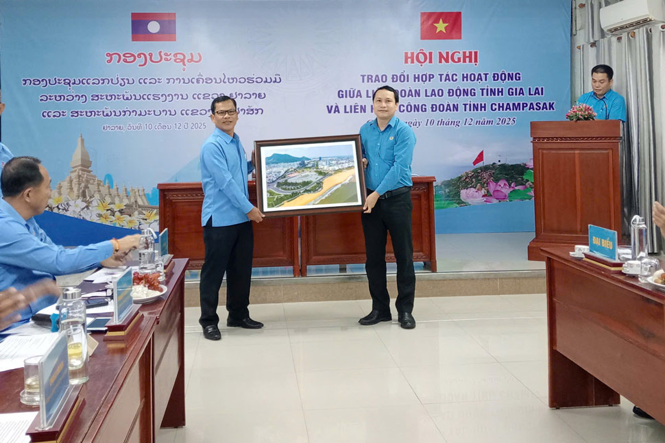 On the afternoon of December 10, the Gia Lai Provincial Federation of Labor and the Champasak Provincial Federation of Labor (Laos) held a cooperation exchange conference to strengthen solidarity and improve the effectiveness of coordination between the two trade union organizations.