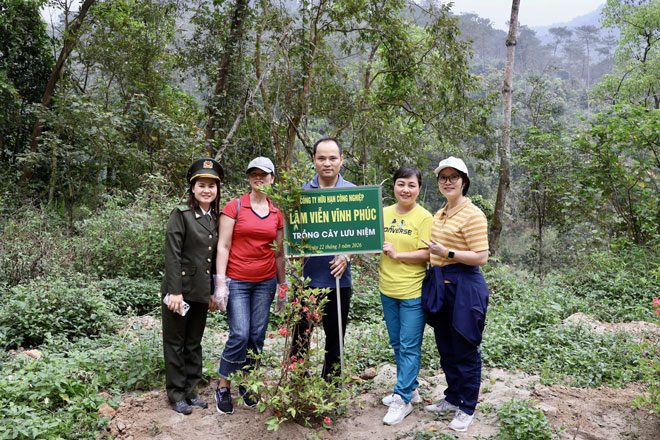 Responding to activities for a green, clean, and beautiful environment, recently, the grassroots Trade Union of Lam Vien Vinh Phuc Industrial Co., Ltd. (Khai Quang Industrial Park) organized a tree planting and environmental sanitation program at Tam Dao National Park, attracting nearly 30 officials and employees to participate.