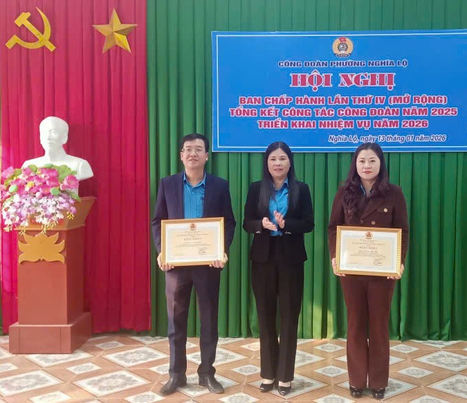 On this occasion, the Lao Cai Provincial Labor Federation awarded Certificates of Merit to the Nghia Lo Ward Trade Union, 3 grassroots trade unions and 4 typical individuals. The Ward Trade Union also commended many collectives and individuals with outstanding achievements in trade union activities and storm and flood prevention and control in 2025.