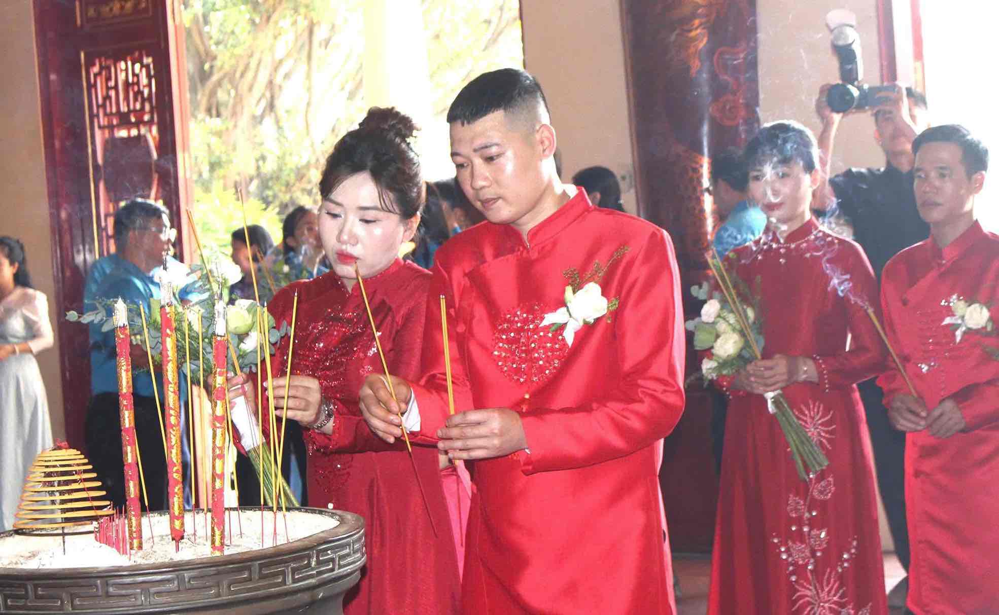 Couples selected to participate in the collective wedding ceremony will be supported with wedding photography (given a large photo of 60cm x 90cm); support wedding clothes, wedding flowers; support 2 salty banquet tables for relatives and friends attending the wedding ceremony; give each couple a pair of wedding rings; support all facilities and conditions for organizing the collective wedding ceremony...