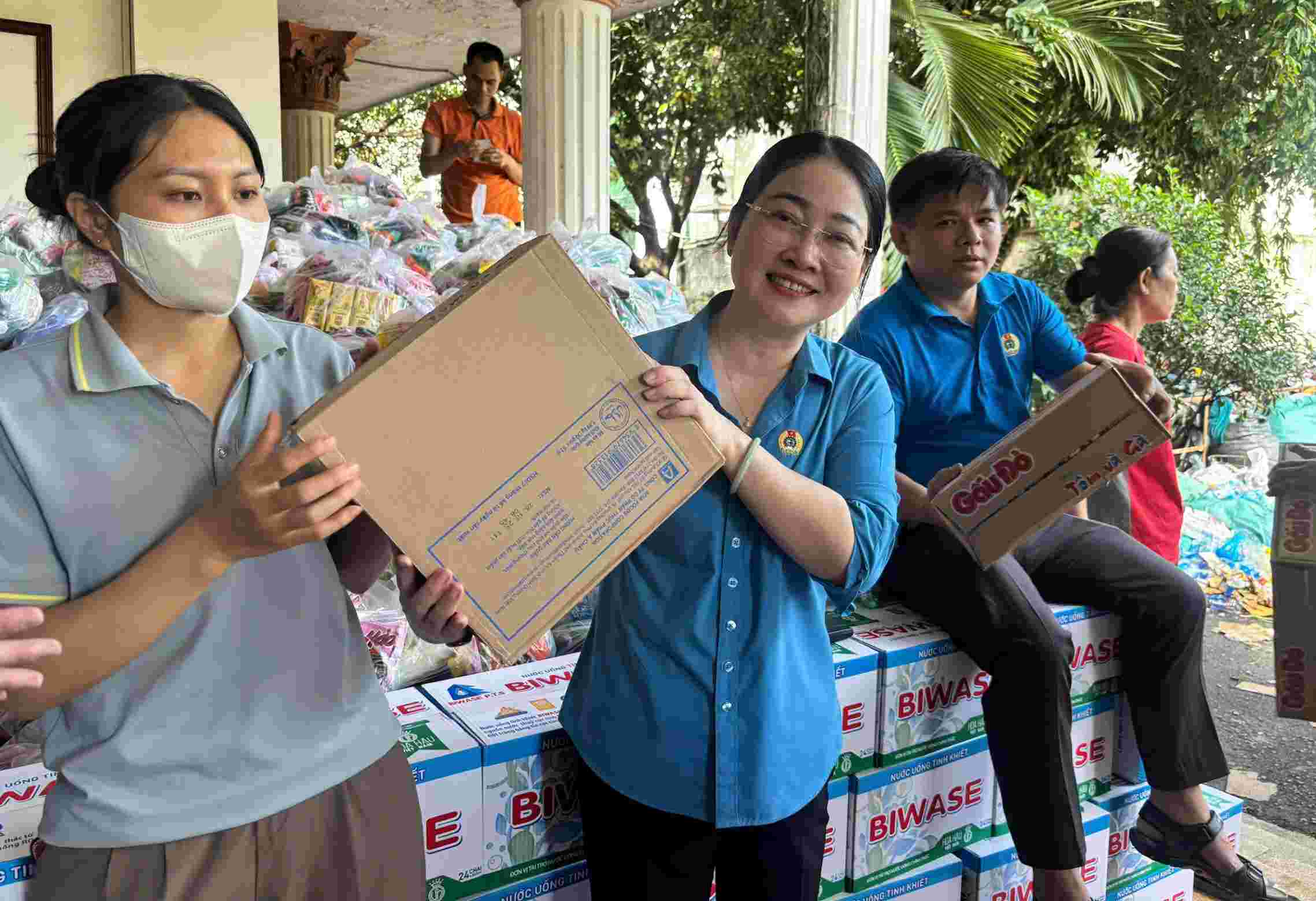 The Ho Chi Minh City Trade Union has re-classified goods, packaged and loaded them onto trucks and containers to transport to people in flooded areas. The total amount of goods transported to date has reached 380 tons, and about 40 tons are being loaded onto vehicles, expected to depart for the provinces this evening.