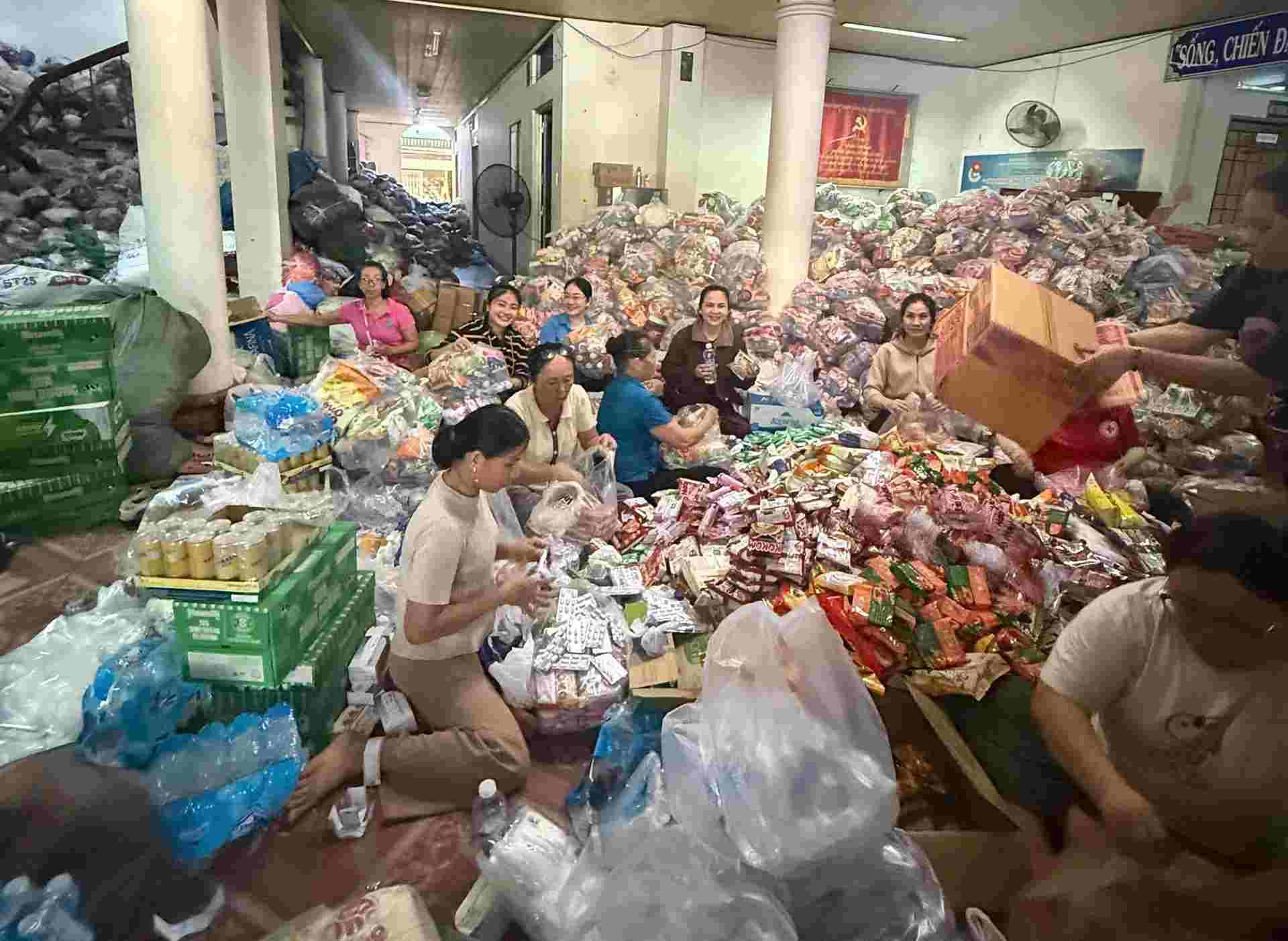 The Ho Chi Minh City Trade Union organizes 3 points to receive relief goods including: score 1 at the Ho Chi Minh City Labor Culture Palace - No. 55B Nguyen Thi Minh Khai, Ben Thanh Ward; score 2 at 499 Yersin, Thu Dau Mot Ward; score 3 at area A2, Gate No. 2, Nguyen Tat Thanh Street, Ba Ria Ward. In Binh Duong area alone, on November 23, 200 tons of goods were donated including: clothes, blankets, rice, instant noodles, drinking water, candy, milk, etc.