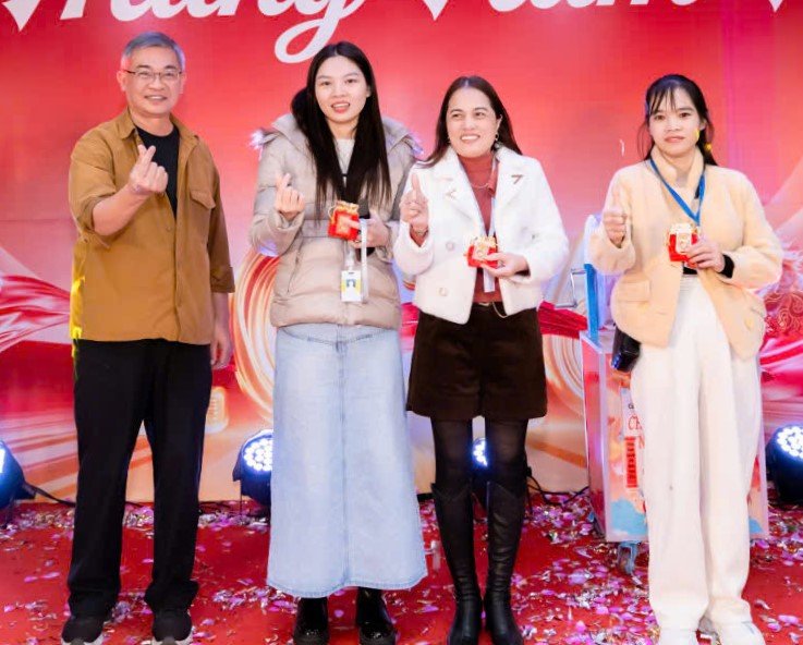 Ms. Nguyen Thi Huong (sewing worker at production line A02), bursting with joy when lucky enough to win 1 chi of 9999 gold lottery, shared her joy when participating in the Tet reunion program organized by the Trade Union and the Company.