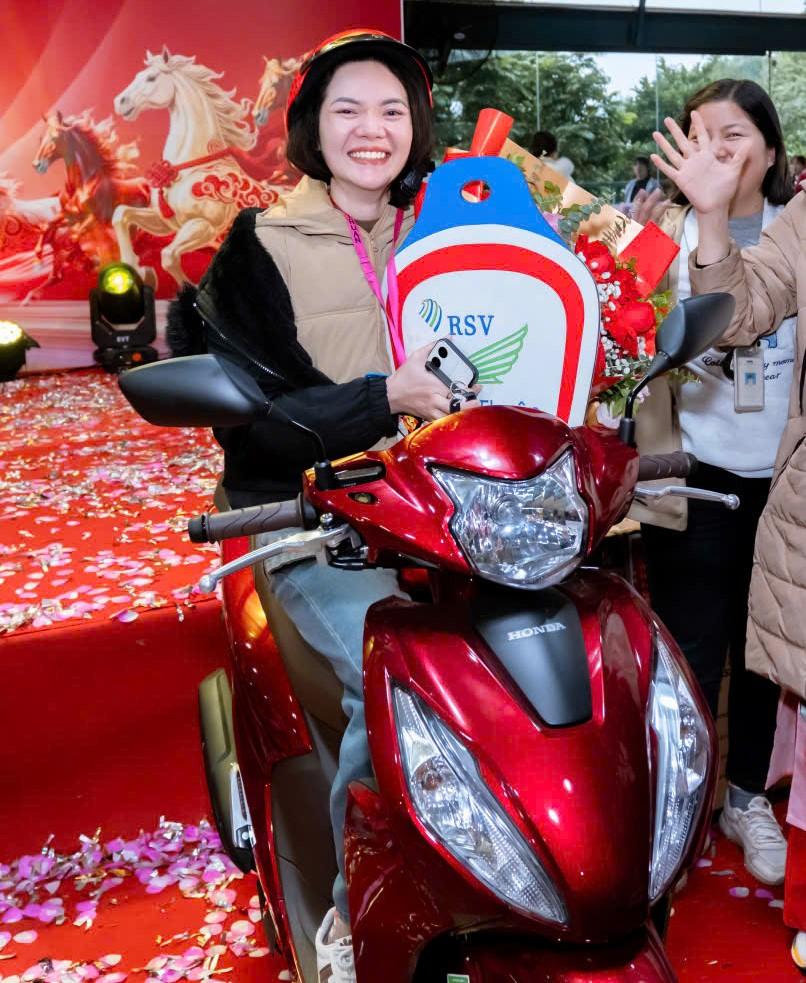 Similarly, Ms. Tran Thi Trang (worker of the technical department at the Company) was also lucky enough to win a motorbike worth more than 30 million VND. Ms. Trang shared: "I am very happy and happy that I am one of the luckiest people to win the highest prize. A new motorbike to go to work is my husband and I's long-held dream. So this Tet, my husband and I have a new motorbike to go out.