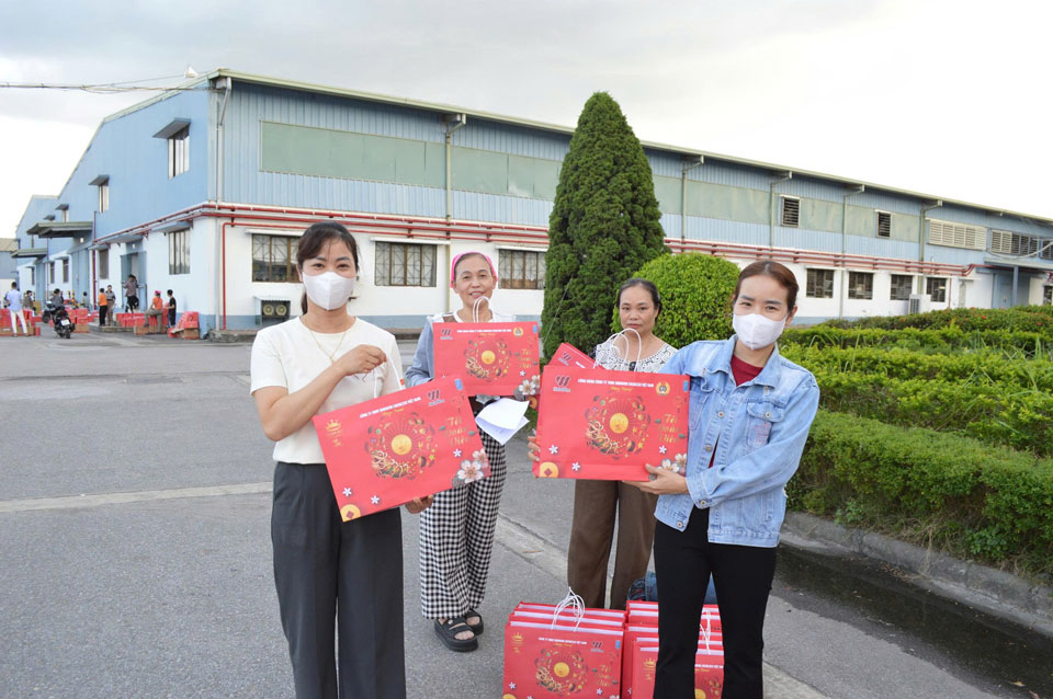 The grassroots union coordinated with the leaders of HJC VINA Company Limited to present 1,658 gifts with a total value of 312,732,000 VND to union members and workers.