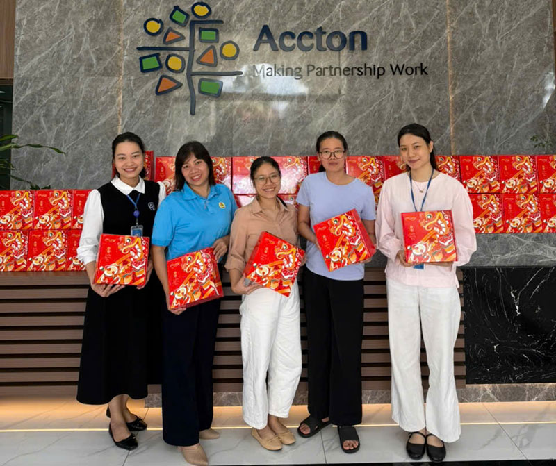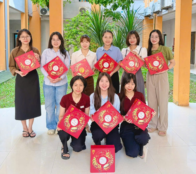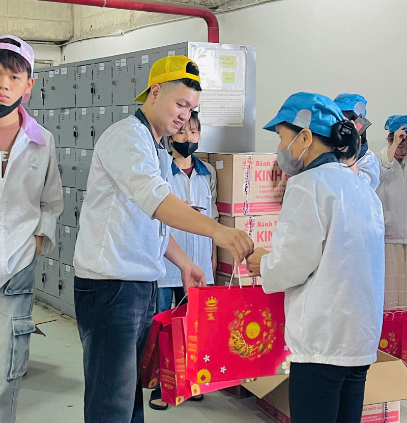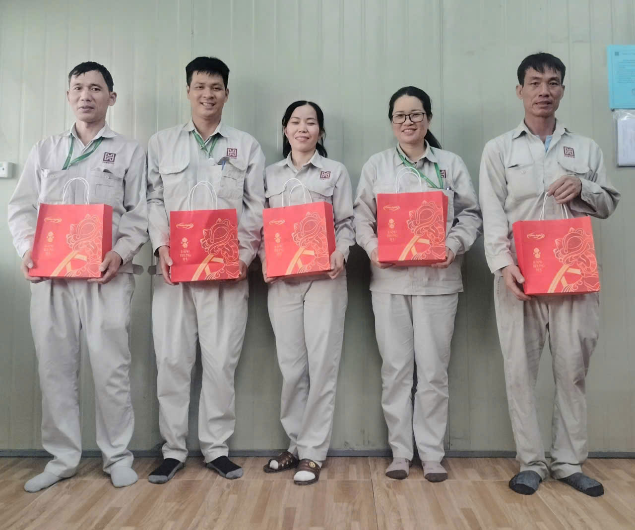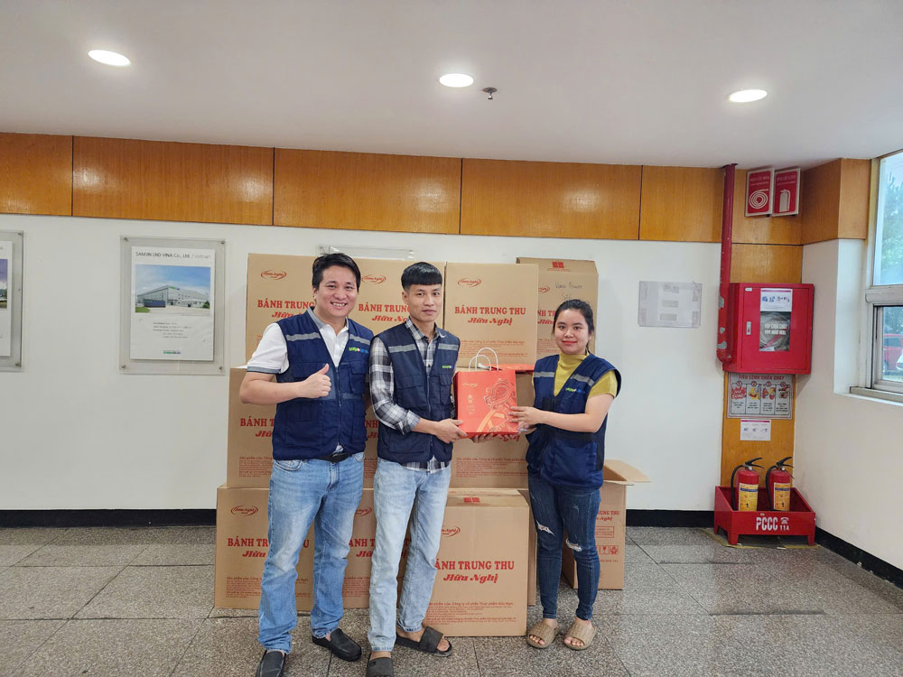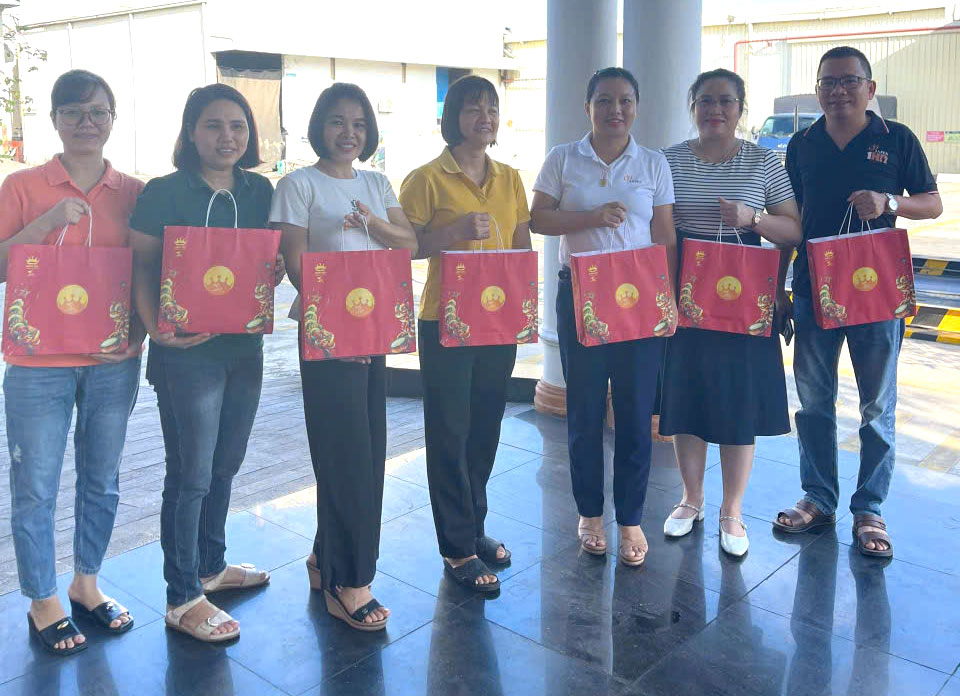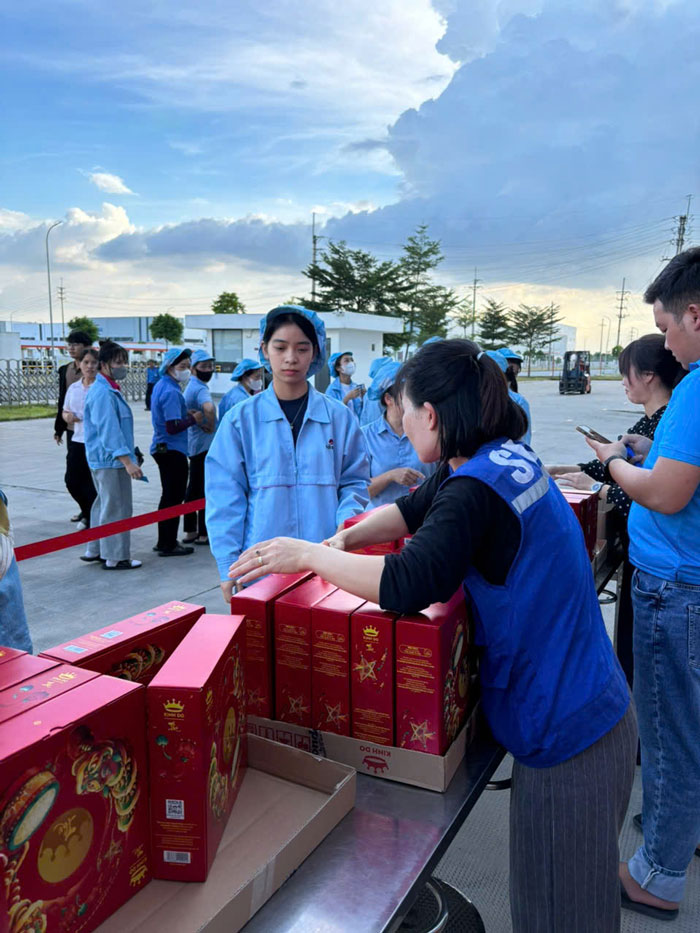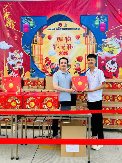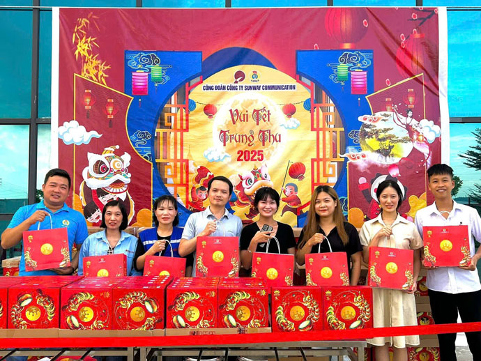Sunway Communication Company gave union members and workers a Mid-Autumn Festival gift of 1 box of Kinh Do cakes paid by the grassroots union and a voucher at Go worth 200,000 VND given by the company.