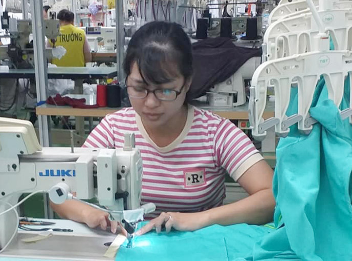 Ms. Pham Thi Diem (32 years old) - a sewing worker working at the factory - shared that the company has also invested in the latest generation of electronic sewing machines so that workers can work more efficiently. "Since replacing the electronic sewing machine, more products have been produced, less dust without having to spend time cutting off excess thread like before. The machine is also very easy to use, simple operation with buttons, less problems than traditional sewing machines" - Ms. Diem said.