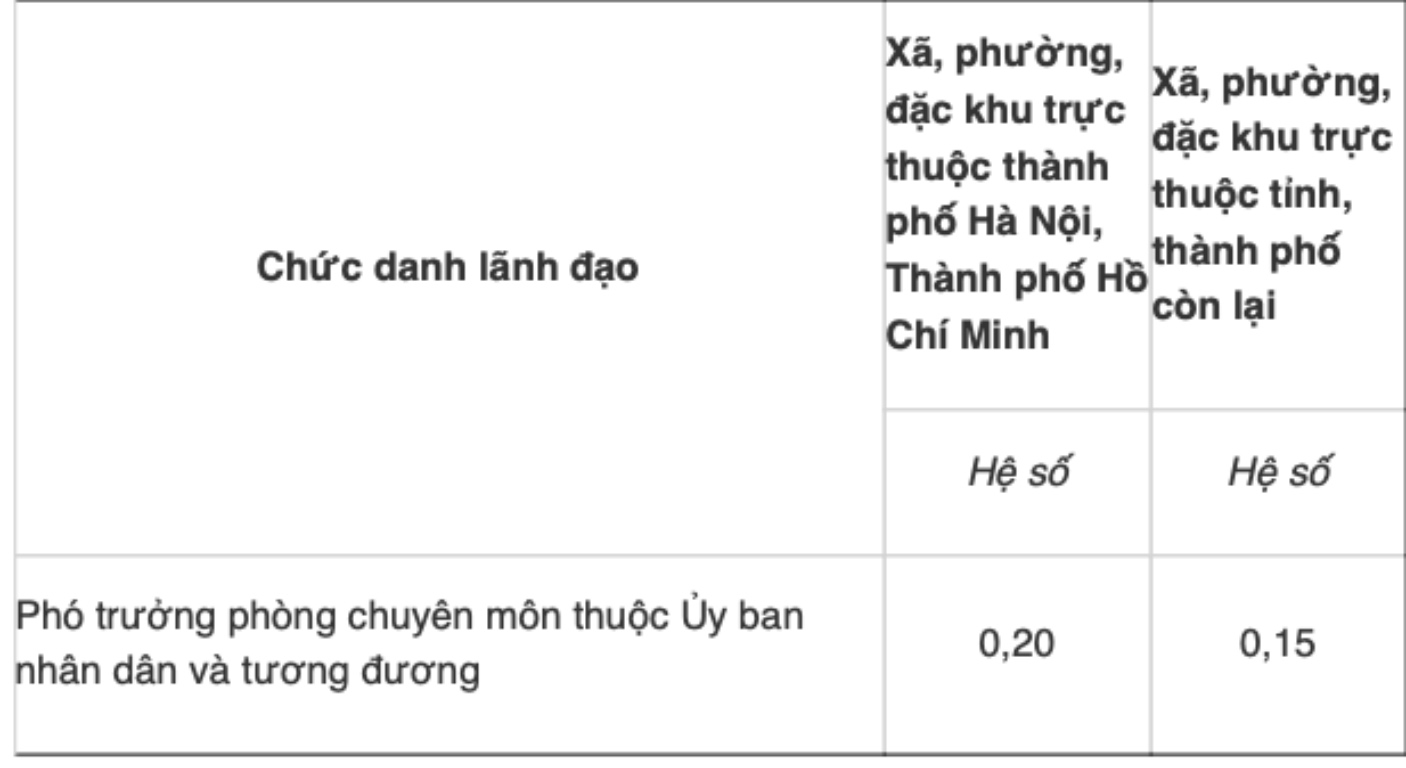 Accordingly, supplementing the Salary Coefficient for Deputy Heads of Professional Agencies at the commune level as follows: