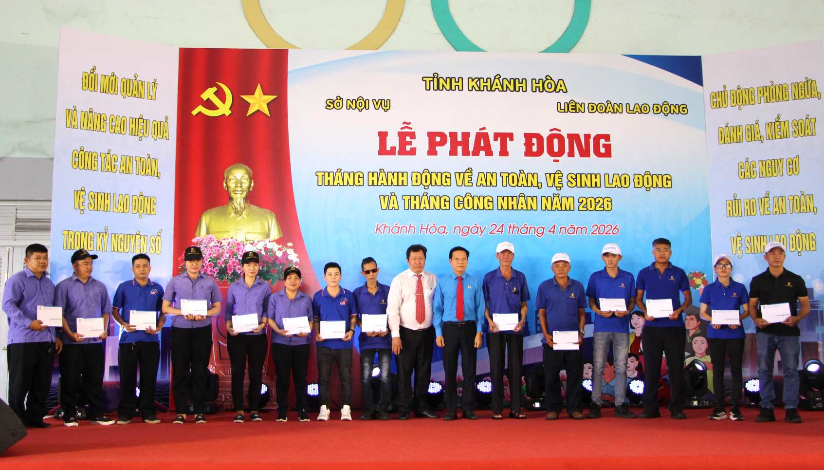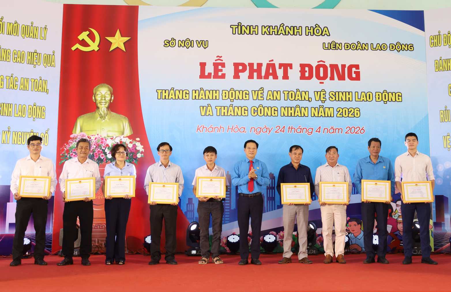 On April 24, at Suoi Dau Industrial Park (Cam Lam commune), the Provincial Labor Federation (LĐLĐ) in coordination with the Khanh Hoa Department of Home Affairs organized the launching ceremony of Workers' Month 2026 and action month on occupational safety and health (ATVSLĐ).