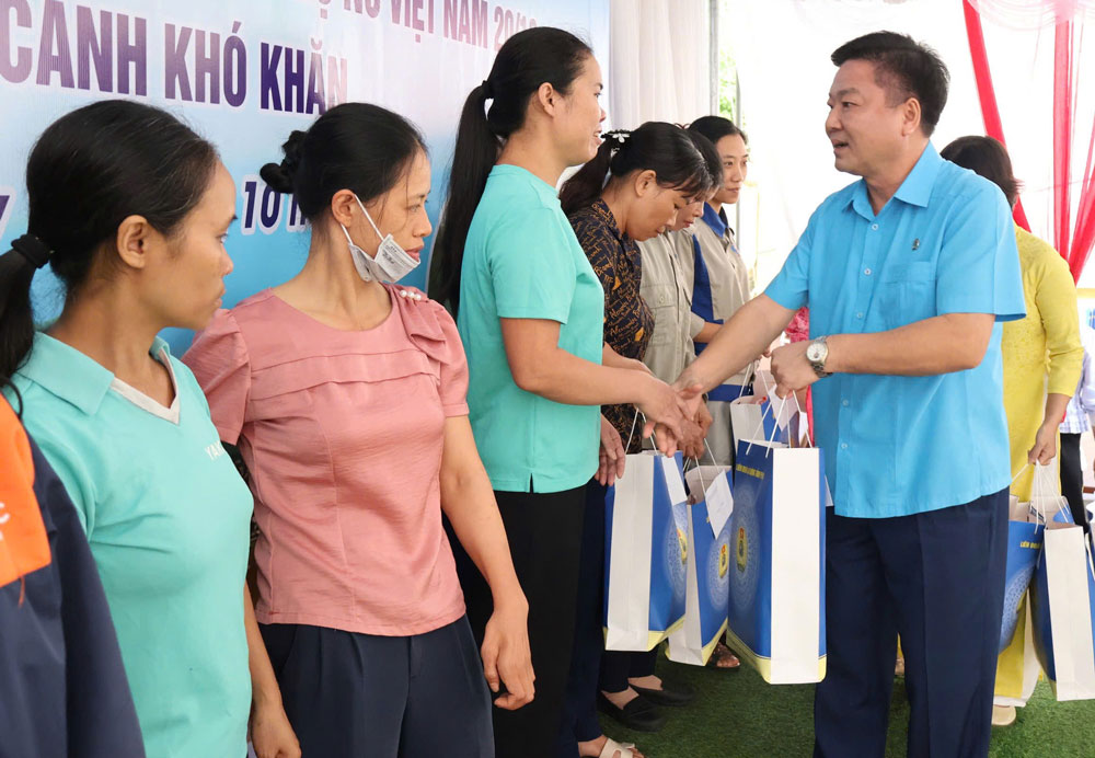At Hoa Binh Industrial Park, Mr. Do Ngoc Anh - Vice President of the Provincial Federation of Labor, Head of the Trade Union Work Committee presented 40 gifts, each worth 1 million VND, to female union members in difficult circumstances.
