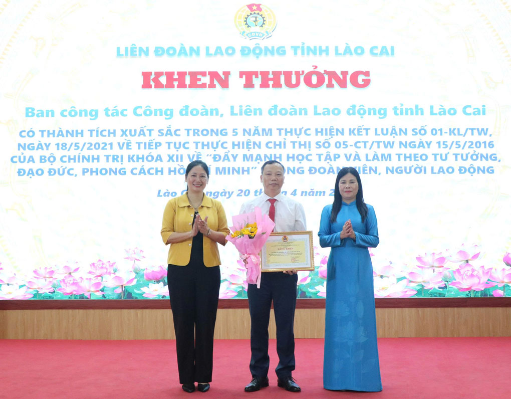 On the afternoon of April 20, Lao Cai Provincial Labor Federation organized a conference to summarize 5 years of implementing Conclusion No. 01-CT/TW dated May 18, 2021 on continuing to implement Directive No. 05-CT/TW dated May 15, 2016 of the 12th Politburo on "promoting studying and following Ho Chi Minh's ideology, morality, and style" among union members and workers.