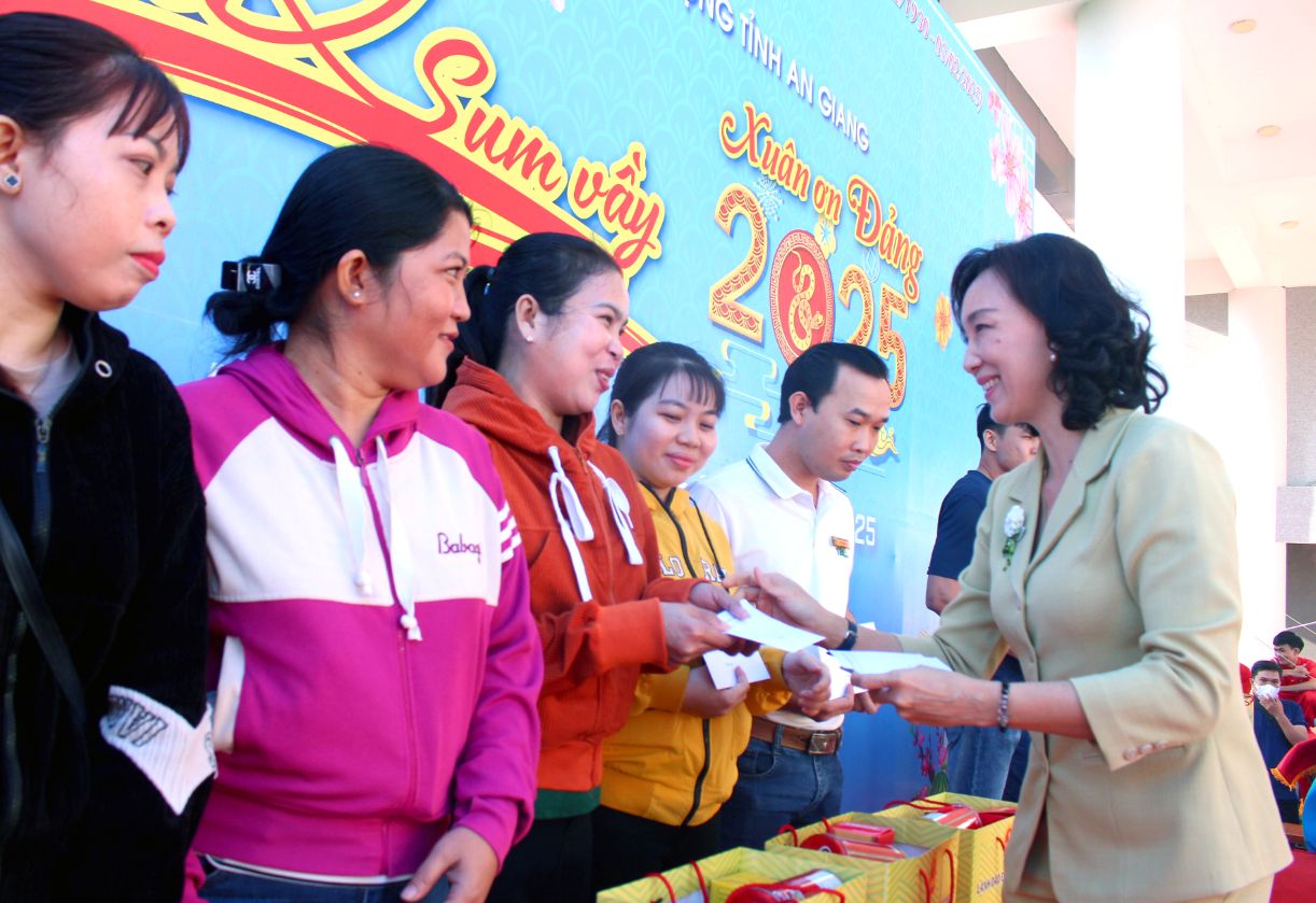 On the morning of January 24, in Long Xuyen City, the An Giang Provincial Police Union, the Youth and Women's Committee, in coordination with the An Giang Provincial Blind Association and a volunteer group organized the program "Sharing Love" to give Tet gifts to the visually impaired in difficult circumstances in Long Xuyen City.