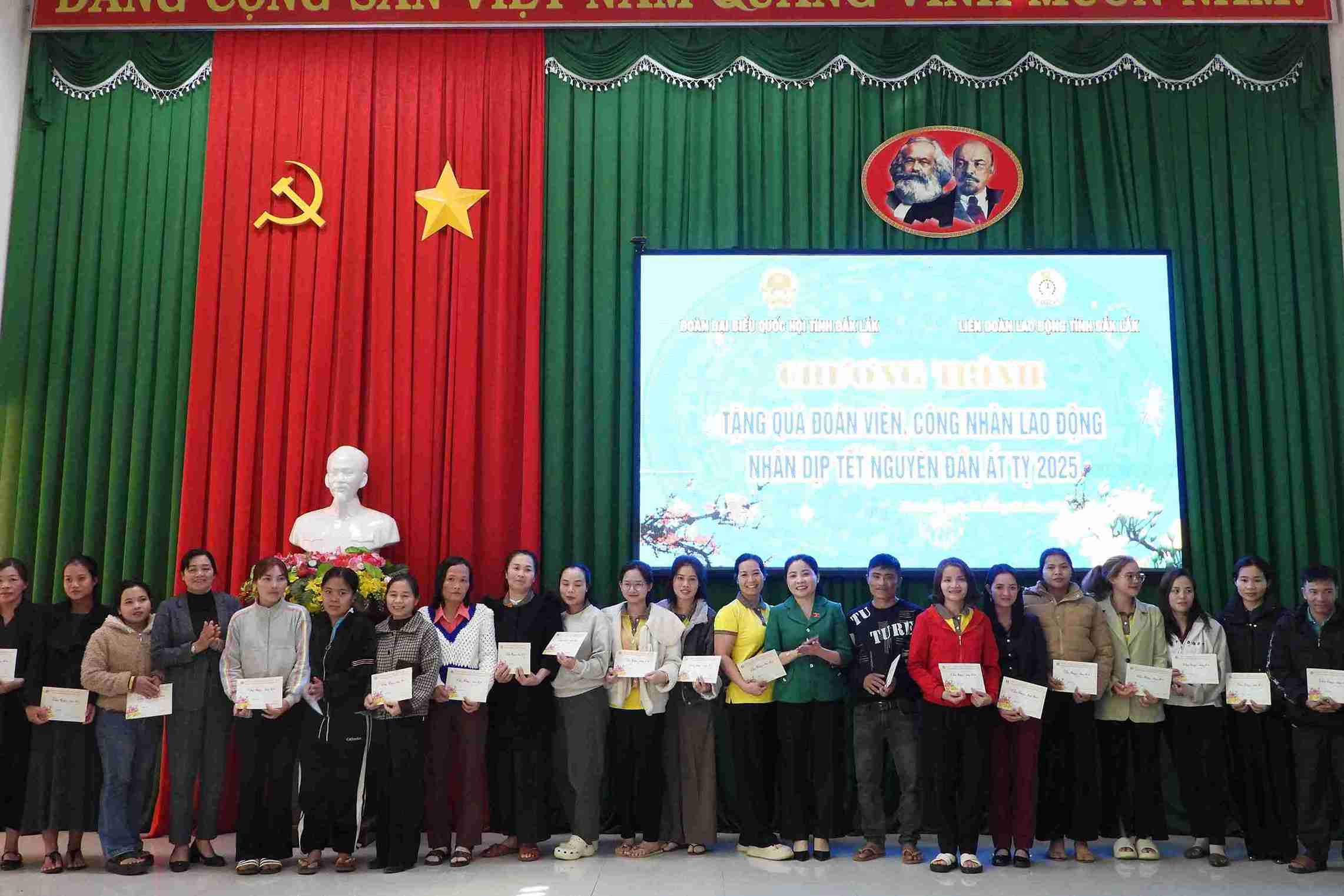 After kindly visiting, sharing and encouraging the visually impaired people in difficult circumstances, the delegation presented 174 gifts, each worth 300,000 VND including: cakes, jams, rice, cooking oil, daily necessities and cash.