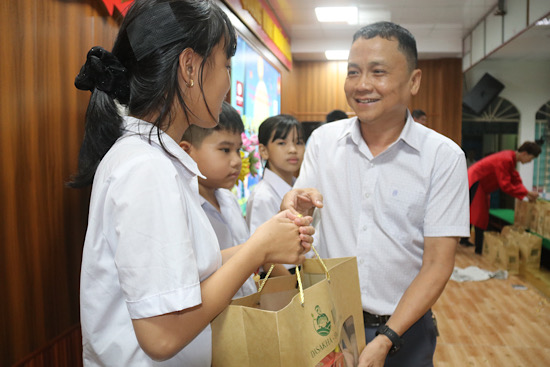 At the program, leaders of Khanh Hoa Provincial Federation of Labor, Ward Trade Union and sponsoring units presented 40 gifts (worth 1 million VND/gift, including gifts and cash) to union members' children in difficult and special circumstances.